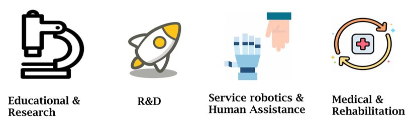 The combination of these innovations results in a flexible prehensile device that can grasp a wide variety of objects. The single-motor actuation makes the hand plug-and-play and simple-to-control (one single motor requires one single control signal to close and open the whole hand) and affordable. The robotic hand qb SoftHand Rsearch can be easily integrated with main cobot brands in the market and is also UR+ certified by the robotics Danish company Universal Robots.